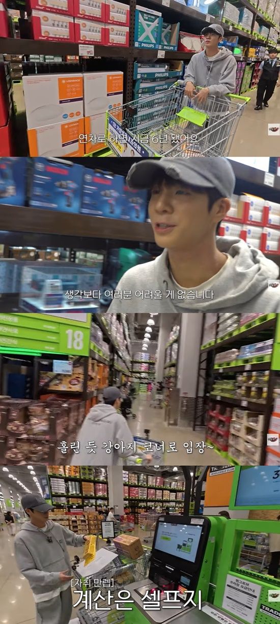 강아지 코너를 찾은 정동원은 강아지 사료 등을 구입했고, 시식 코너까지 알뜰하게 누비며 쇼핑을 이어갔다.