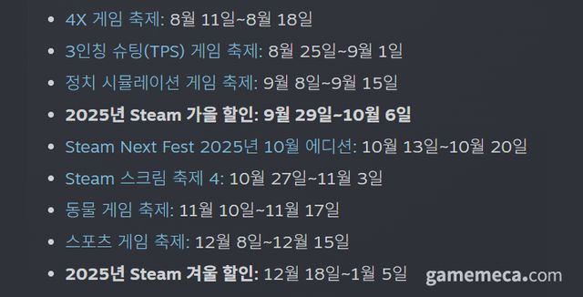 ▲ 2025년 하반기까지 남은 스팀 축제 일정 (자료출처: 스팀 공식 페이지)