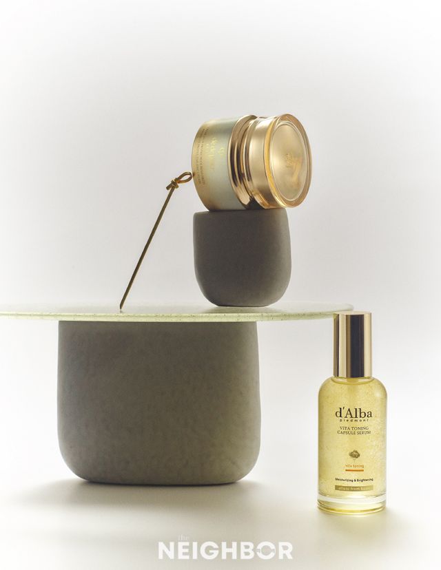 d’Alba 비타민 C, 글루타티온을 리포솜화한 글루타티온좀, 미백 기능성 나이아신아마이드 함유로 칙칙한 피부에 조명 켠 듯 생기를 부여하는 비타 토닝 세럼. 100ml 4만2천원.