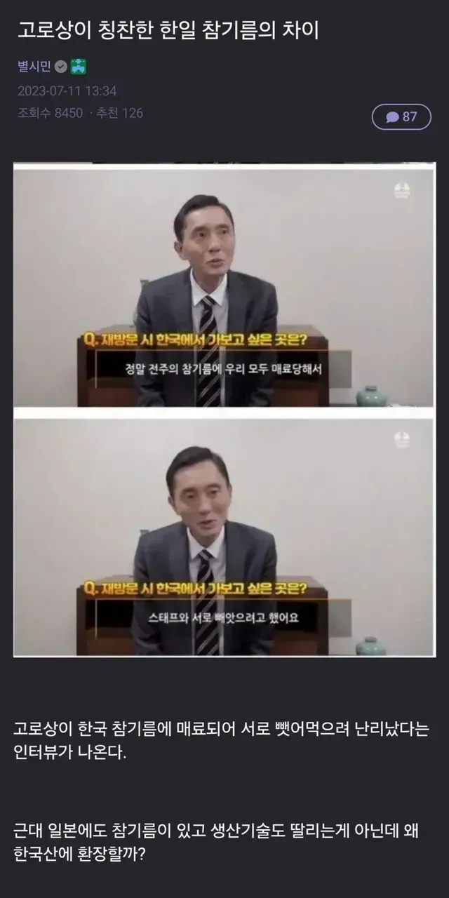 고독한 미식가가 칭찬한 한일 참기름의 차이.jpg,,