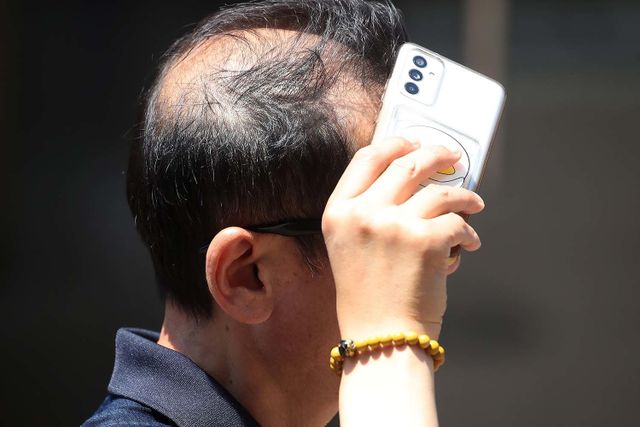 폭염이 계속된 1일 대구 중구 동성로에서 한 시민이 휴대전화로 뙤약볕을 가린 채 발걸음을 옮기고 있다. / 뉴스1