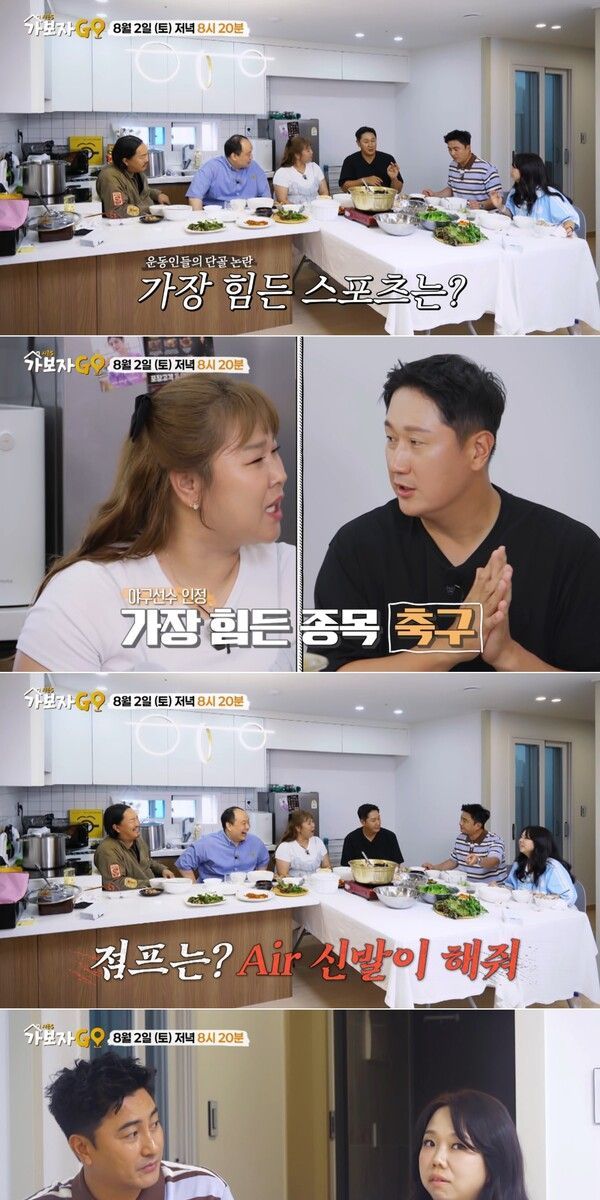 2일 방송되는 ‘가보자GO’ 시즌5 5회 두 번째 선공개 영상에서는 안정환을 비롯해 전 야구선수 이대호, 개그우먼이자 예능계 대표 운동인 김민경이 출연해 스포츠의 고충에 대해 진솔한 대화를 나눴다.