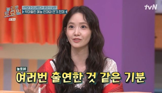 이에 윤아는 “기억난다. 제가 ‘놀토’에 2번째 출연하는 건데, 그날 인상이 너무 강렬했는지 저조차도 ‘놀토’에 여러 번 출연한 것 같다. 그 당시에 멤버들이 다들 무슨 작품 촬영 중이길래 이런 텐션이냐고 했다. ‘왜 그랬을까’ 생각이 들 정도의 텐션이었는데, 그 당시 촬영했던 작품이 ‘악마가 이사왔다’였다”라고 고백했다. 이를 들은 모두가 바로 이해해 웃음을 안겼다. 신동엽은 “그때 악마가 된 거야. 프로그램을 위해서”라고 했고, 넉살은 “사람 스타일은 아니었다”라고 밝혔다.