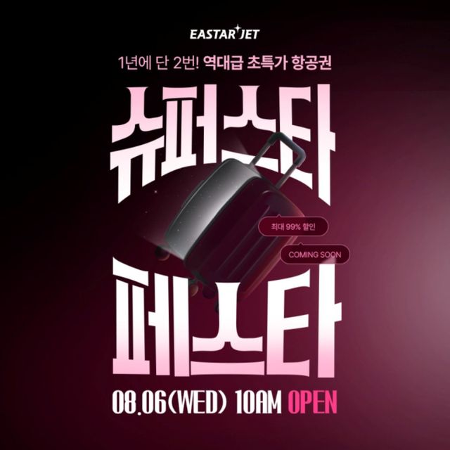 이스타항공은 오는 8월 6일 오전 10시부터 연중 최대 규모의 특가 프로모션 '슈퍼스타 페스타(슈스페)'를 진행한다고 31일 밝혔다.