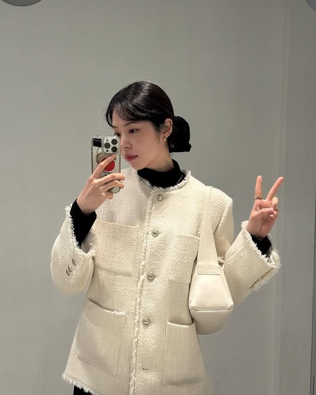 시스루 화이트 니트와 블랙 보브컷의 조화, 케플러 김다연