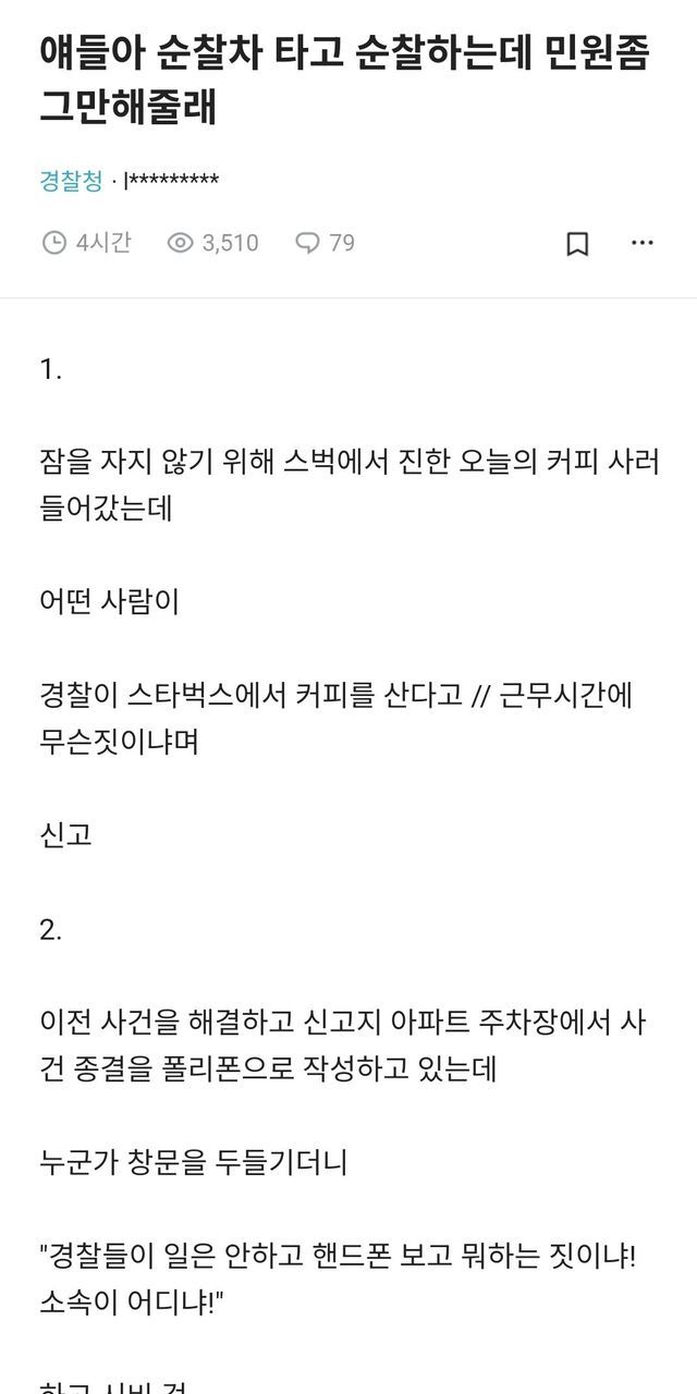 얘들아 순찰차 타고 순찰하는데 민원좀 그만해줄래.blind,,