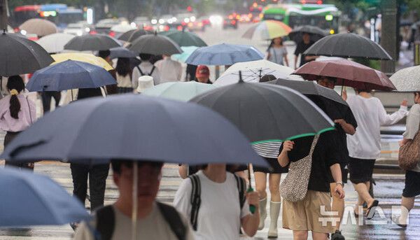 또 일부 지역에서는 천둥과 번개를 동반한 시간당 30㎜ 안팎의 비가 내릴 것으로 예상돼 기상청은 주의를 당부했다.