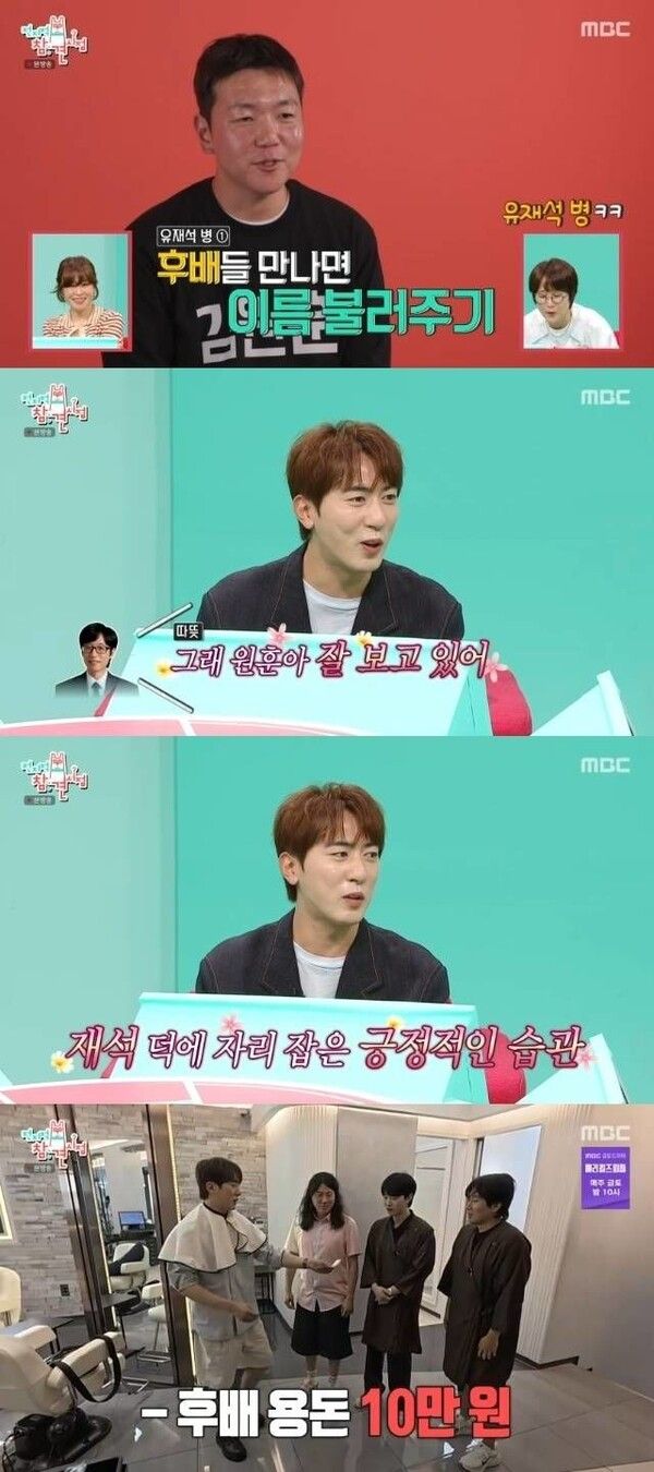 이어 "(유재석이) 후배들에게 잘해주기로 유명하잖나. 원훈형도 후배들 만나면 이름 외워 불러주고 연락해서 잘 보고 있다고 하고 오며 가며 마주치는 스태프 이름도 외우려고 한다"고 했다.