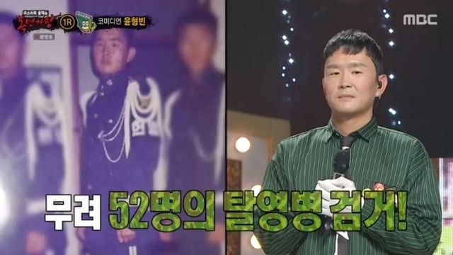 윤형빈은 “(탈영병 중에는) 중대장이 ‘이런 식으로 할 거면 집에 가’라고 해서 진짜 짐 싸고 간 친구가 있었다”며 “반지의 제왕 개봉일에 맞춰 들어가겠다고 탈영한 경우도 있었다”고 말했다. 김구라는 “그런 것까지 다 합쳐서 52명이냐”고 물어 웃음을 자아냈다.
