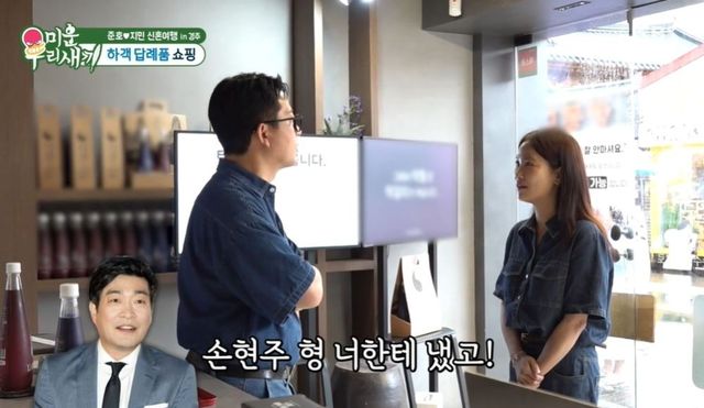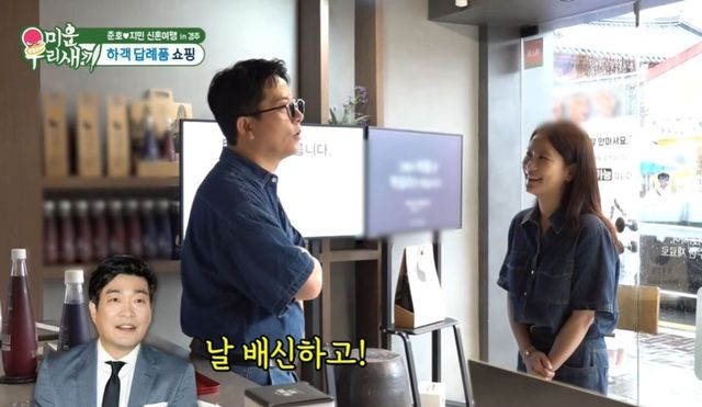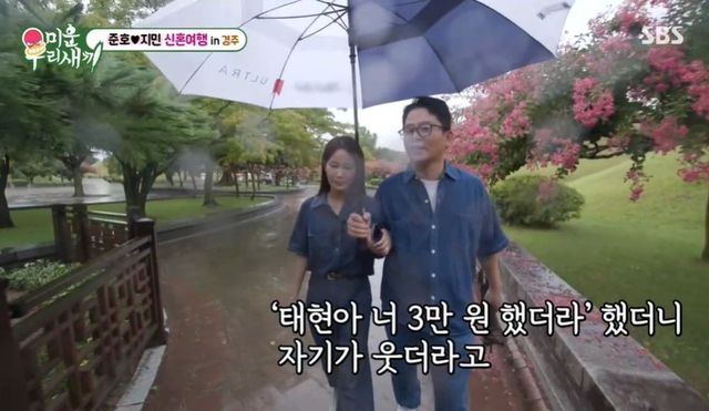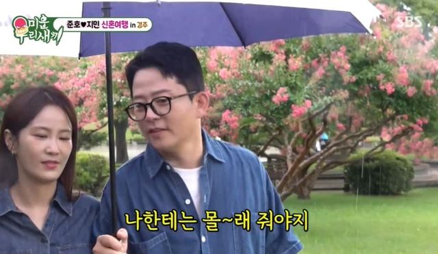 신동엽은 두 사람이 축의금을 합치기로 한 걸 말하며 “지인들이 그걸 다 알기 때문에 지민이 쪽으로 몰빵했다. 안전하게 가야 한다고. 혹시나 준호한테 가면 중간에서 살짝 (가져갈 수 있으니)”라고 설명했다.