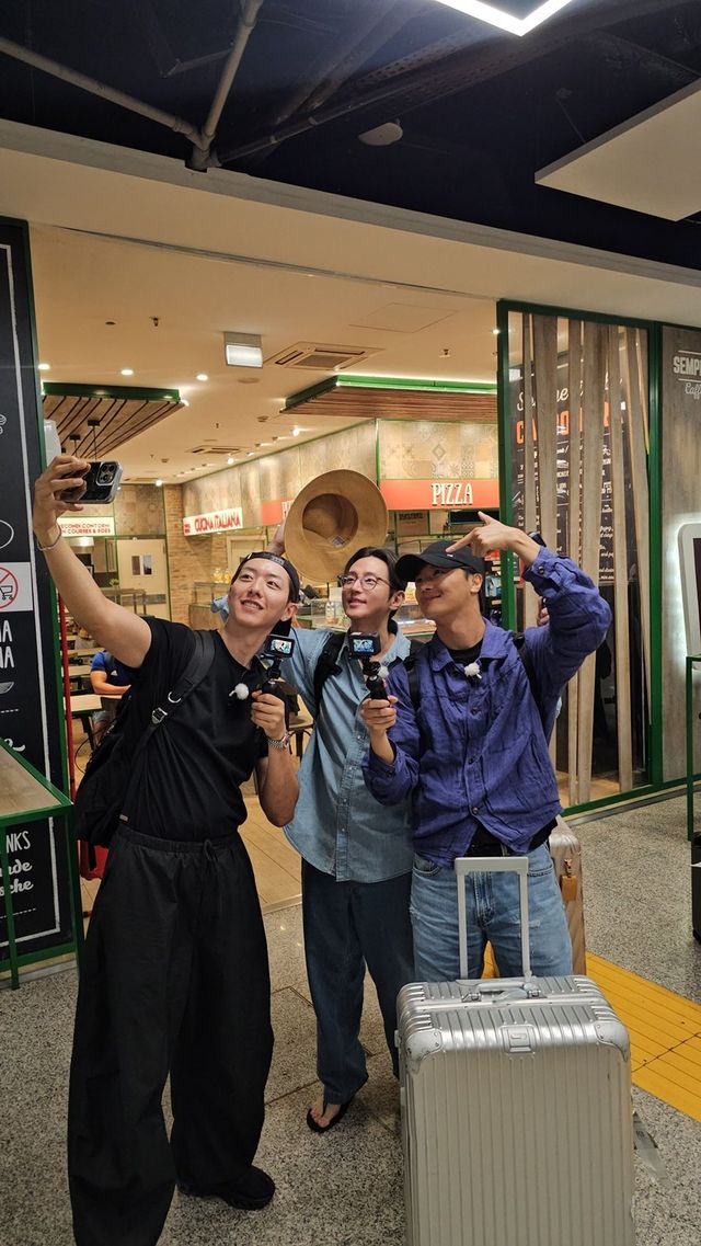 이정신은 블랙 티셔츠와 와이드 팬츠, 거꾸로 쓴 캡 모자로 편안하면서도 멋스러운 공항 패션을 선보였고, 권율은 청셔츠에 슬리퍼를 착용한 ‘꾸안꾸’ 룩으로 여유로운 분위기를 자아냈다. 연우진은 보랏빛 셔츠와 청바지, 은색 캐리어를 끌며 특유의 장난기 어린 표정으로 셀카에 생기를 더했다. 세 사람은 각자의 스타일을 확연히 드러내면서도 영락없는 여행자 포스를 자아내며 공항 패션의 ‘현실 버전’을 몸소 보여줬다.