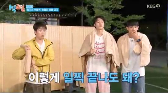 (엑스포츠뉴스 원민순 기자) '1박 2일' 멤버들이 촬영이 일찍 끝나자 불안해 했다.