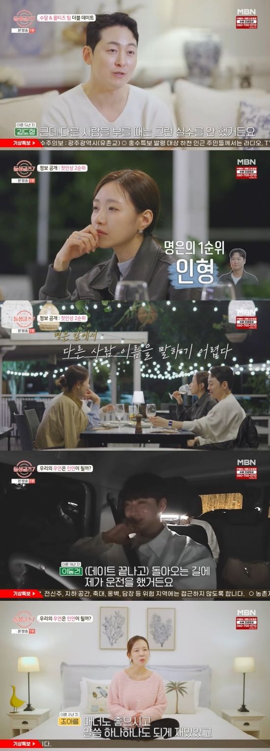 데이트 전 명은을 1순위에 뒀던 동건은 데이트를 하면서 아름에게 호감을 느낀 듯 "아름 씨랑 티키타카도 잘 되고 그런 부분이 잘 맞았다"고 말했다.