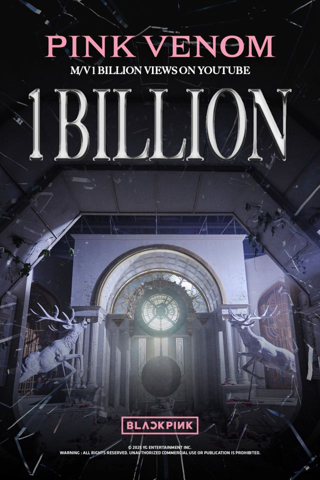 4일 YG엔터테인먼트에 따르면 블랙핑크의 ‘핑크 베놈’ 뮤직비디오는 이날 오전 0시 52분께 유튜브 조회수 10억 회를 넘어섰다. 지난 2022년 8월 19일 공개된 지 약 3년 만이다.