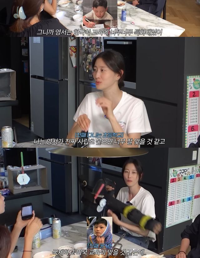 이현이는 "영서는 한국식 교육에 특화되어 있다. 시키는 거 다한다. 사립초에 딱 너무 잘 맞을 거 같다"며 첫째 아들이 다니고 있는 학교를 언급했다. 이어 "윤서는 오히려 너무 자유로우니까 국제학교, 미국 교육이 맞을 거 같다"고 이야기해 눈길을 끌었다.