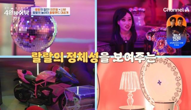 이어 랄랄은 “제가 놀고 싶어서 만들어놨는데, 임신했다”라며 랄랄랜드 내부를 공개했다. 예사롭지 않은 입구를 본 박경림은 “들어가면 못 나올 것 같다”라며 기대했다. 실제로 랄랄의 취향이 담긴 파격적인 인테리어가 시선을 끌었다. 박경림은 “너무 좋은 게 현실을 잊게 만들어준다”라고 감탄했다. 랄랄이 소픔 하나하나 직접 고르고, 만들기까지 했다고. 랄랄은 “아지트처럼 만들고 싶었는데, 딸의 키즈카페가 됐다”라며 공간의 달라진 활용에 대해 밝혔다.