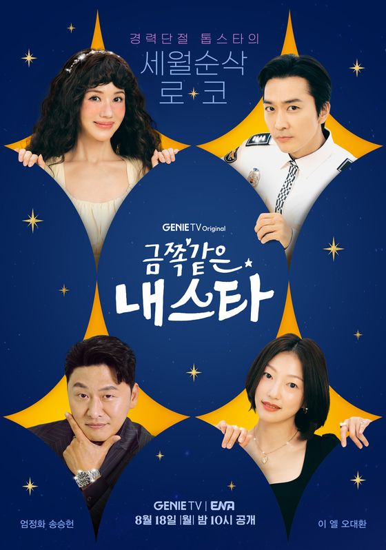 오는8월18일(월)밤10시 첫 공개되는 지니TV오리지널 드라마‘금쪽같은 내 스타’(연출 최영훈,극본 박지하,기획KT스튜디오지니,제작 점보필름)측은4일봉청자(엄정화 분),독고철(송승헌 분),고희영(이엘 분),강두원(오대환 분)의 금쪽같은 활약을 기대케 하는 단체 포스터를 공개했다.