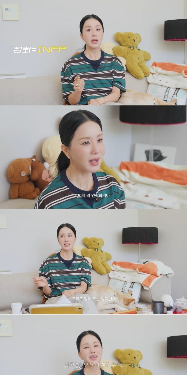 그는 '외향인이냐 내향인이냐'는 질문에 "이 부분을 모르겠다. INFP인데 먼저 막 연락하거나 친구에게 만나자고 하는 거. 맘에 드는 남자에게 먼저 다가간 적이 단 한번도 없다. 그런 남자도 없지만"이라고 고백했다.