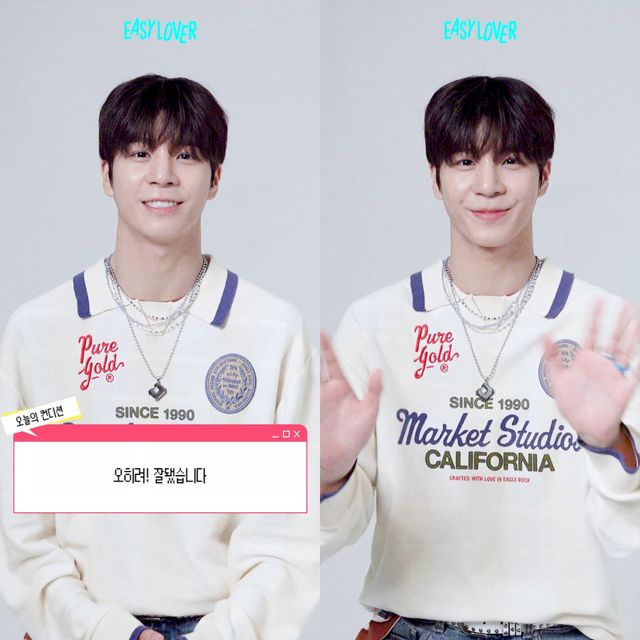 이어 ‘이지 러버(Easy Lover)’의 감상 포인트에 대해 묻자 “이 곡은 순수한 남자가 주변의 만류에도 불구하고, 나쁜 여자와 만나게 되는 이야기다. 저는 연애 경험이 없기 때문에, 그런 순수함을 잘 표현할 수 있는 곡이다”라고 답하며 풋풋하고 진솔한 매력을 드러냈다.