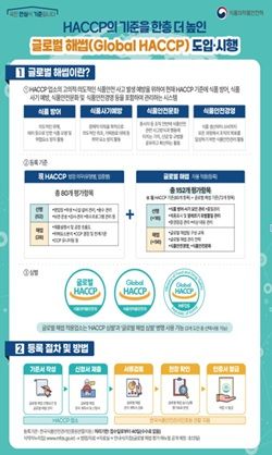 식약처 식품안전정책국은“ ‘글로벌 해썹’ 제도의 안정적인 정착을 위해 글로벌 해썹 평가 전문 인력 양성, 평가 매뉴얼 개발 및 설명회 개최 등 홍보를 강화하고, 국제적으로 통용될 수 있도록 국제 동등성 인정도 추진할 계획이다”고 밝혔다.
