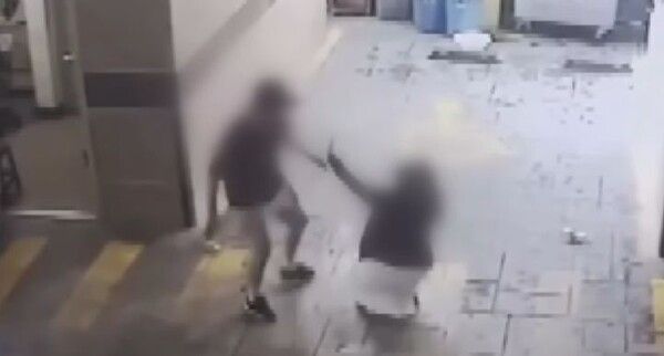 영상에는 마주 보고 대화하던 B씨가 돌연 A씨의 뺨을 때리고, 머리를 수차례 내려친 뒤 뒷덜미를 잡아 넘어뜨리는 모습이 찍혔다.