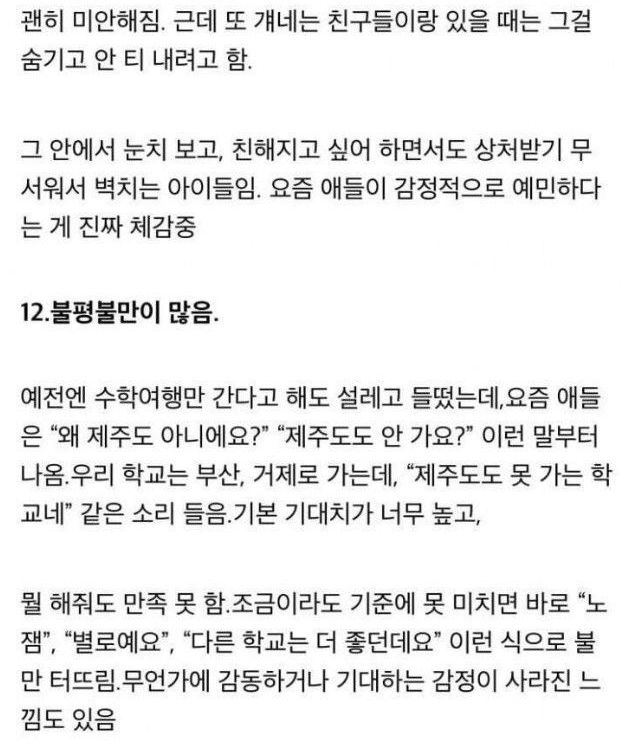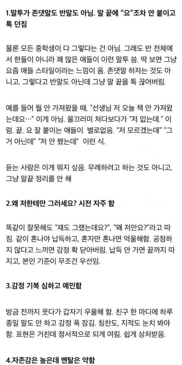 중학교 교사가 쓴 요즘 중학생 특징