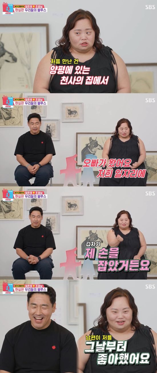 이날 방송에서 정은혜는 "2024년 2월 1일 양평에 있는 천사의 집으로 오빠가 왔다. 처음에는 (서로를) 전혀 몰랐다. 제 손을 잡아서 그날부터 좋아했다"라며 남편과의 첫 만남을 공개했다.