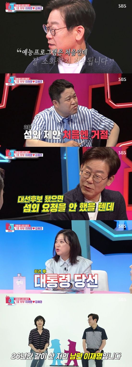 방송에서 이재명은 아내 김혜경과 티격태격하는 모습을 보여주는가 하면, "나는 번식 기능을 잃었다"면서 정관수술 여부까지 공개했다.
