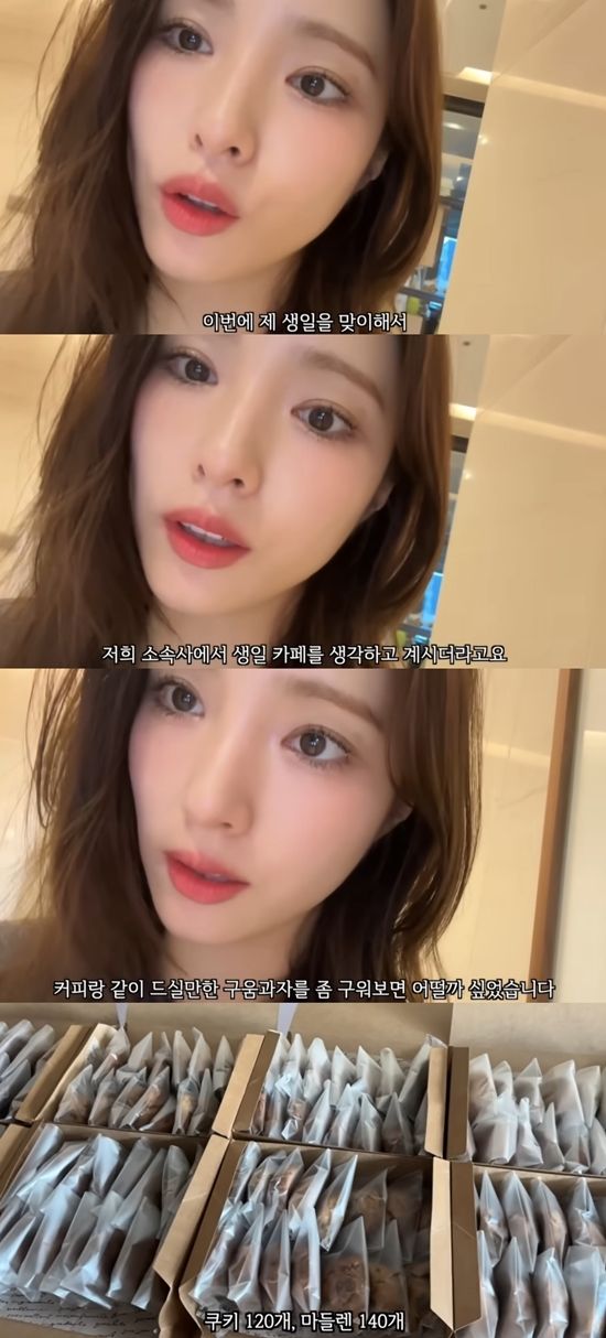 이날 신세경은 "오랜만에 인사드린다. 이번에 제 생일을 맞이해서 소속사에서 생일 카페를 생각하고 계시더라. 제가 어떻게 도움이 될 수 있을지 고민을 해보다가 팬분들이 카페에 방문해 주셨을 때 커피랑 같이 드실만한 구움과자를 구워보면 어떨까 싶었다"라며 역조공 계획을 밝혔다.