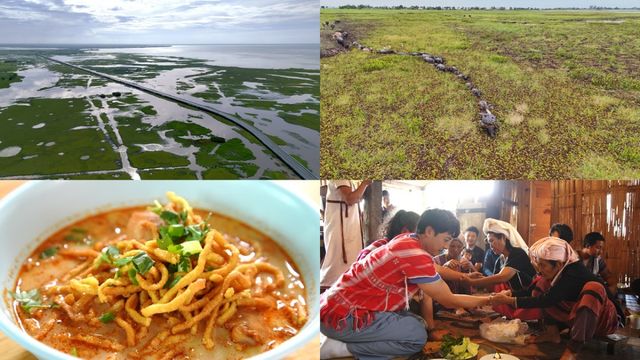 5.5km 태국에서 가장 긴 다리인 찰름 프라끼앗 80 판사 다리(Chaloem Phrakiat 80 Phansa Bridge)를 지나 남부의 고대 도시 파탈룽(Phatthalung)으로 간다. 남부의 일출과 일몰 명소이자 동남아시아에서 가장 큰 천연 담수호 중 하나인 탈레 너이 호수 (Thale Noi Lake) 는 물소 방목지로도 유명한데 이곳에서 오랫동안 물소를 키우고 있다는 까 씨. 이른 아침 쪽배를 타고 나가는데 호수를 가득 메운 붉은 수련(Dok Bua Daeng) 풍경이 장관이다. 30분 정도 걸려 우사에 도착해 물소들을 풀어주자 우르르 몰려 나가는 굶주린 소들. 곧 대장 물소 뒤를 따라 일렬로 헤엄쳐 가는데 그 모습이 꽤 인상적이다. 오전 7시에 풀어놓으면 오후 4시까지 탈레 너이 호수를 맘대로 돌아다니며 배를 채운다고. 갑자기 쏟아지는 비를 피해 찾아간 오두막엔 다른 사람들이 먼저 자리를 잡고 있는데 송클라와 나콘시탐마랏 지역의 목동들이다. ‘작은 바다’를 뜻할 만큼 면적이 큰 탈레 너이 호수는 세 지역 주민의 삶의 터전. 찹쌀밥에 튀긴 닭 껍질을 새참으로 먹으며 마음을 나눈다.