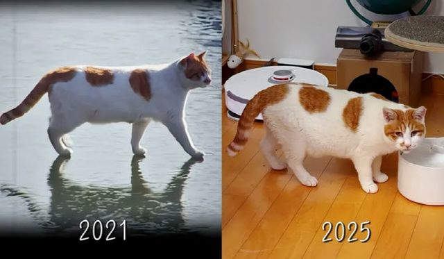 지난해 1월쯤 온라인에서 크게 유행한 밈 속 주인공인 길고양이가 가족을 만나 건강하게 살고 있는 근황이 전해졌다. 고양이를 입양한 사람은 다름 아닌 이 고양이를 촬영한 영상 기자로 직접 입양 소식을 알렸다.
