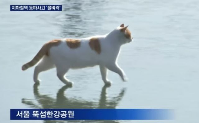 당시 뚝섬한강공원 한강 위로 노란색 얼룩무늬 고양이가 조심스레 걸어가는 모습이 취재진 눈에 띄어 “꽁꽁 얼어붙은 한강 위로 고양이가 걸어다닙니다”라는 멘트와 함께 보도됐다. 딱딱한 내용을 주로 다루는 뉴스에서 보기 드문 순수한 장면과 왠지 모를 리듬감이 느껴지는 내레이션이 온라인에서 뒤늦게 큰 화제를 모았다.