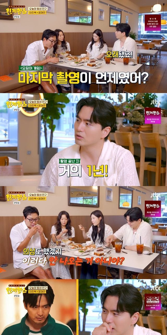 이날 김희선이 "'오징어 게임' 마지막 촬영이 언제였냐"고 묻자 이진욱은 "오래됐다. 작년 초였나"라며 약 1년이 지났다고 밝혔다.
