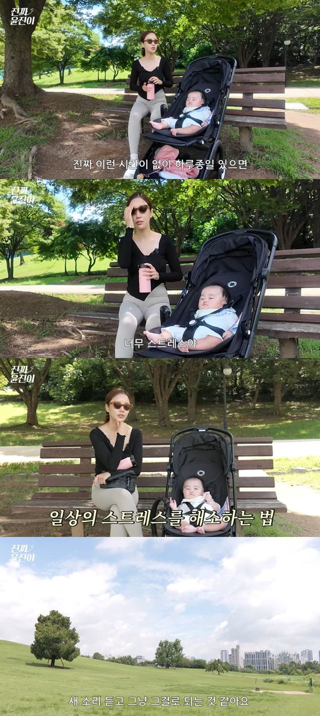 딸을 품에 안으며 "더 커라. 빨리 커라"라며 소망을 드러낸 윤진이는 이후 올림픽 공원으로 산책에 나섰다.