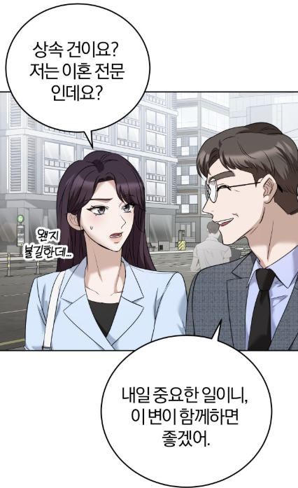 채영은 당황해서 자기는 이혼전문이라고 하는데요.