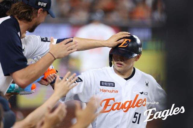 김서현마저 이정훈에게 몸에 맞는 공을 허용, 허경민의 희생플라이로 실점하며 문동주의 승리요건이 날아갔다. 안현민에게도 몸에 맞는 공으로 흔들린 김서현은 이후 강백호에게 몬스터월을 직격하는 싹쓸이 안타를 맞으면서 교체됐다. 이후 김범수와 주현상, 조동욱이 추가 실점 없이 이닝을 끝냈으나 이렇다 할 반전을 만들지 못하고 패배, 1위 자리를 다시 LG에게 넘겼다.