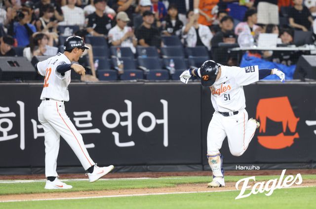그런데 문동주가 승리투수 요건을 갖추고 마운드를 내려가자마자 점수가 뒤집혔다. 아웃카운트 6개만 남은 상황이었는데, 믿었던 한승혁이 황재균에게 솔로 홈런을 허용했고, 장진혁에게 볼넷, 대타 강현우에게 안타를 허용하면서 아웃카운트 하나밖에 잡지 못하고 마운드를 마무리 김서현에게 넘겼다.