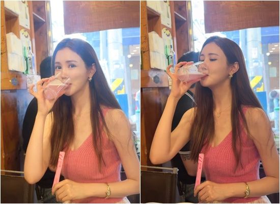 공개된 사진에는 한 음식점에서 핑크빛 액체가 담긴 음료를 즐기고 있는 이다해의 모습이 담겼다. 핑크색 니트 슬리브리스에 골드 액세서리로 포인트를 준 그는 여름에 어울리는 시원한 차림으로 사랑스러운 매력을 드러냈다.