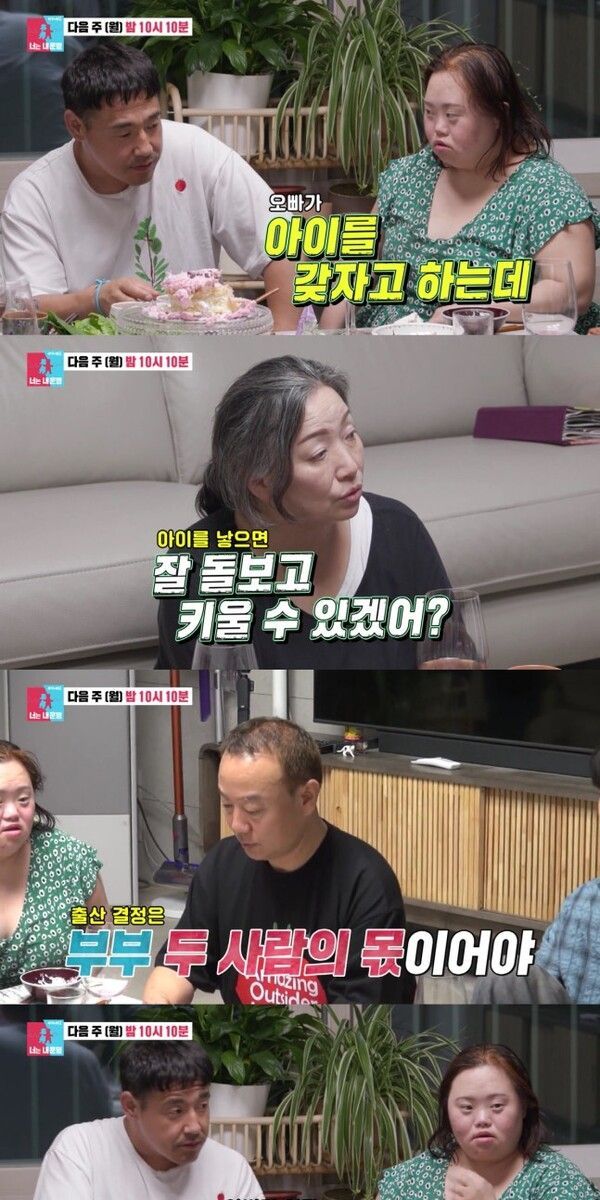 [메디먼트뉴스 김수현 기자] 발달장애인 부부 정은혜와 조영남이 2세 계획에 대한 깊은 속마음을 털어놓는다. "아이를 낳자"는 남편의 제안에 정은혜의 어머니는 현실적인 걱정을 드러내며 고민하는 모습을 보여준다.