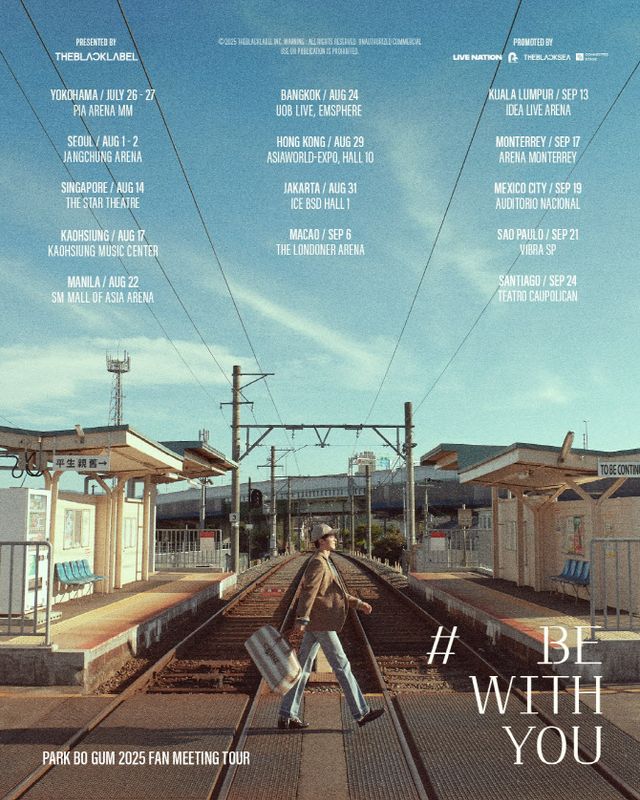 ‘비 위드 유’는 오는 8월 14일 싱가포르, 8월 17일 가오슝, 8월 22일 마닐라, 8월 24일 방콕, 8월 29일 홍콩, 8월 31일 자카르타, 9월 6일 마카오, 9월 13일 쿠알라룸푸르, 9월 17일 몬테레이, 9월 19일 멕시코시티, 9월 21일 상파울루, 9월 24일 산티아고에서 개최된다.