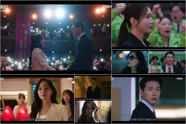 차수연(유진)이 화려한 의상이 겹겹이 걸려있는 드레스룸으로 향하는 사이 현민철(지현우)이 단호한 표정으로 “단 한 사람만이 저를 떠나지 않았습니다”라고 목소리를 높인다. 그리고 현민철을 향해 손을 내미는 차수연의 확신에 찬 모습 뒤로 “당신 덕분에 여기까지 올 수 있었습니다”라는 현민철의 소감과 함께 현민철의 대통령 당선 확정에 감격한 채 축하 꽃다발을 건네는 신해린(이민영)의 모습이 비친다.