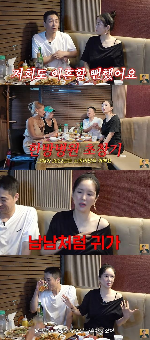 두 사람은 과거 이혼 위기를 겪은 사실도 털어놨다. 장영란은 "병원을 하면서 둘이 진짜 많이 싸웠다"고 화두를 던졌고, 한창은 "저희도 진짜 이혼할 뻔했다. 그때가 2022년도 초반이었을 거다. 유튜브 하기 전이었을 거다"고 설명했다.