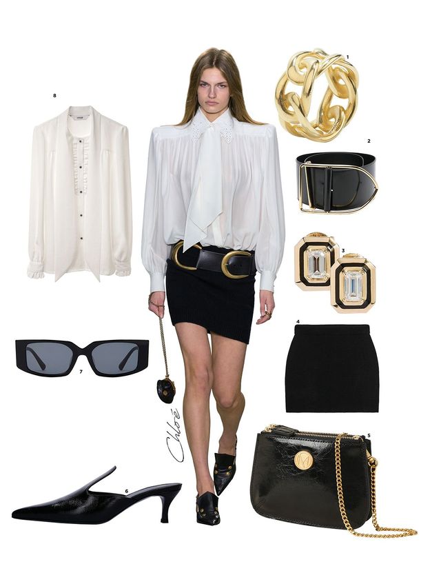 1 반지는 54만원 Goossens. 2 벨트는 85만원대 Jacquemus by Farfetch. 3 귀고리는 59만원대 Jem&Pebbles.4 미니스커트는 4만원대 Zara.