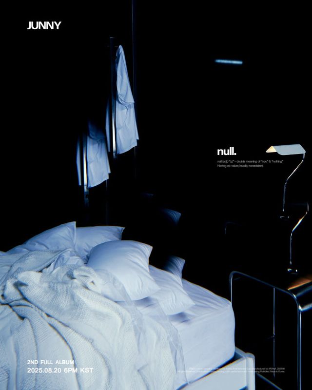 주니는 지난 6일 소속사 모브컴퍼니 공식 SNS를 통해 ‘널’의 커밍순 이미지를 공개했다. 감각적인 침대 배경과 더불어 앨범명이 “너”와 “무(無)”를 동시에 뜻하는 이중적인 표현이라는 해석의 영어 문구와 ‘Having no value; invalid; nonexistent’라는 키워드가 베일을 벗었다.