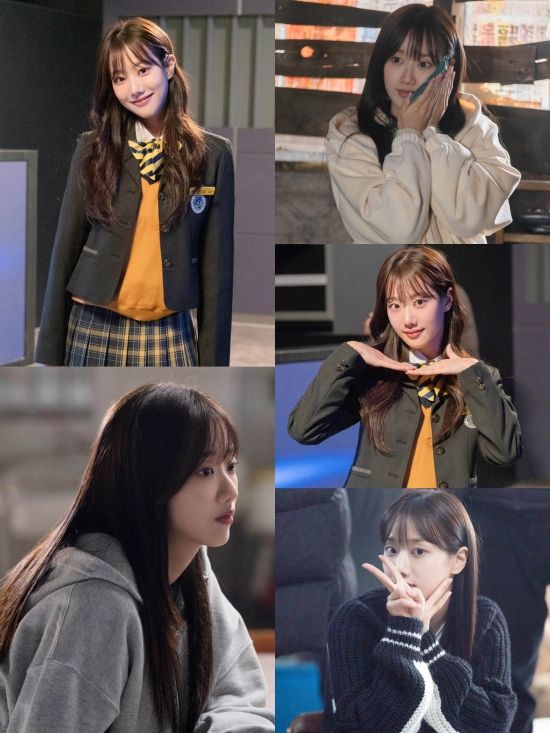 특히 교복을 입은 이나은의 모습은 고등학생 같은 풋풋함과 러블리함을 자아낸다. 그런가 하면 핫팩을 얼굴에 붙이거나 카메라를 보고 장난스럽게 브이 포즈를 취한 그의 모습은 보는 이들을 절로 미소 짓게 만든다.