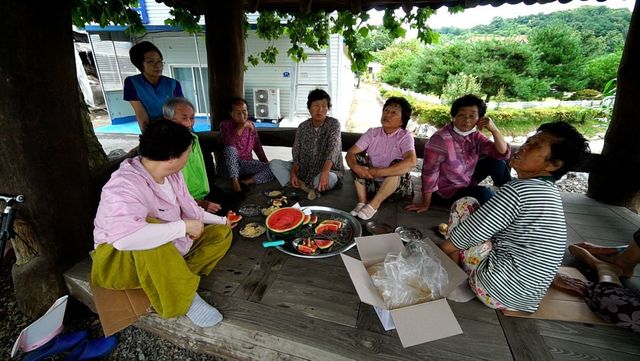 여전히 한여름, 사람들을 한데 모으는 동네 사랑방 역할 톡톡히 한다는 보물 나무.
