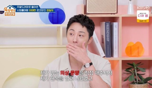 이날 정일우는 한 번도 독립한 적이 없다고 고백했다. 정일우는 “제가 옷이 엄청 많아서 옷방을 2개 쓰는데, 그걸 들고 나갈 곳이 없더라. 바자회를 매년 하는데도 안 된다”라고 밝혔다. 또한 정일우는 “부모님 연세가 있으시니까 제가 나가면 다시 살 일이 없을 것 같더라. 어차피 결혼할 거니까”라고 덧붙였다.