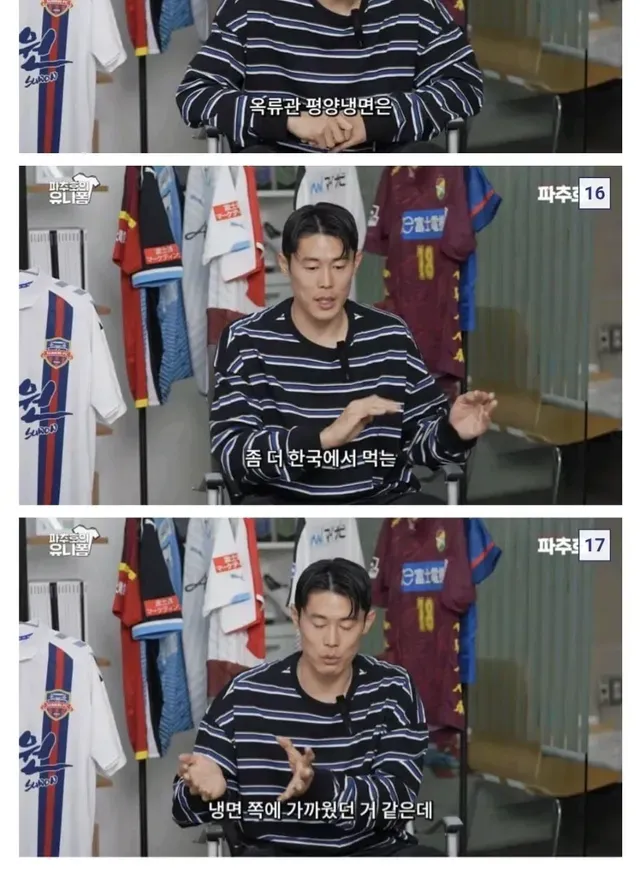 북한 국대출신 축구선수가 한국에서 먹어본 평양냉면,,