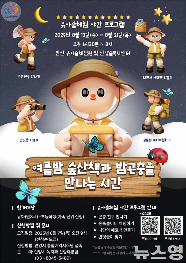 최대호 안양시장은 “작은 곤충 하나에도 설레는 여름밤, 숲은 아이들에게 가장 순수한 교실이 되어줄 것”이라며 “이번 프로그램을 통해 아이들이 자연을 보다 친근하게 느끼고, 생태에 대한 흥미를 키울 수 있기를 바란다”고 말했다.