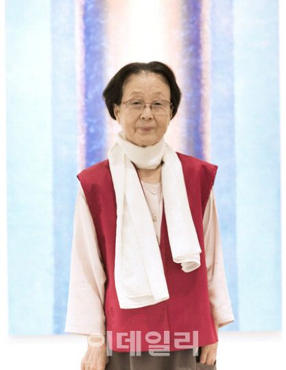 작품의 스케일 또한 점점 확장했다. 평면에 머물던 회화는 공간 전체를 품는 설치작업으로 발전했다. 그림을 원통형 구조물로 말아 천장에 매달기도 하고 때로는 바닥에 눕혀 설치했다. 벽에 걸려 있던 화면은 하늘과 땅으로 확장하며 마치 하나의 성소처럼 공간을 감쌌다. 일흔이 넘은 나이에도 회화를 바탕으로 설치로 나아간 것은 그의 놀라운 동시대적 감각을 보여준다.